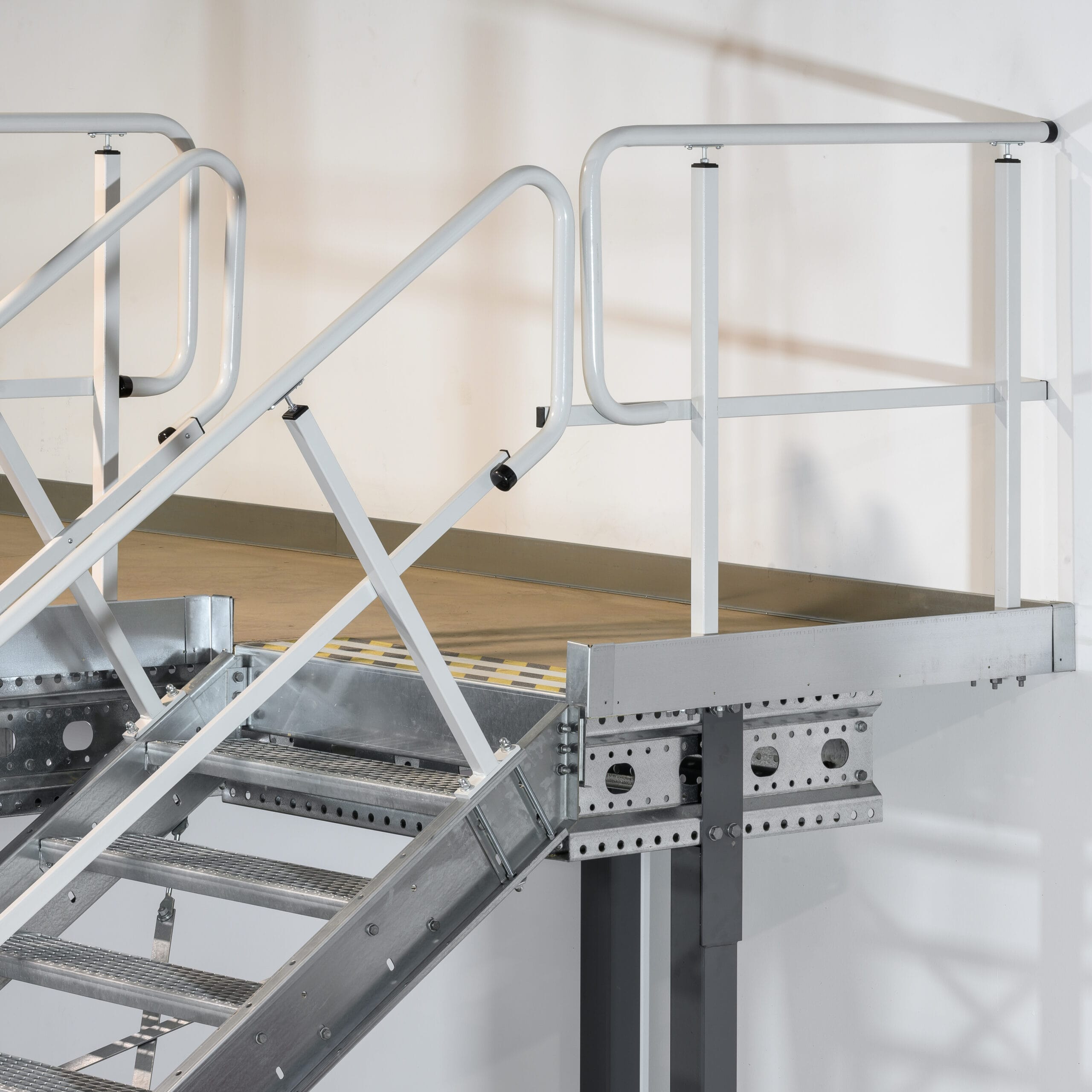 De entresolvloeren worden in Duitsland geproduceerd en voldoen aan alle statische en technische normen. Een eenvoudige zelfmontage van de deels voorgemonteerde onderdelen minimaliseert onderbrekingen in je bedrijfsproces. Het benodigde montagemateriaal leveren we overzichtelijk mee. Op verzoek bieden wij ook een montageservice aan. Houd er rekening mee dat de entresolvloer alleen op een betonnen vloer geïnstalleerd mag worden.