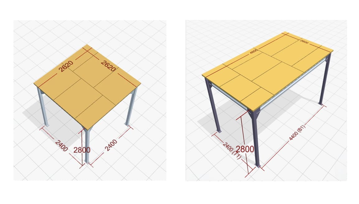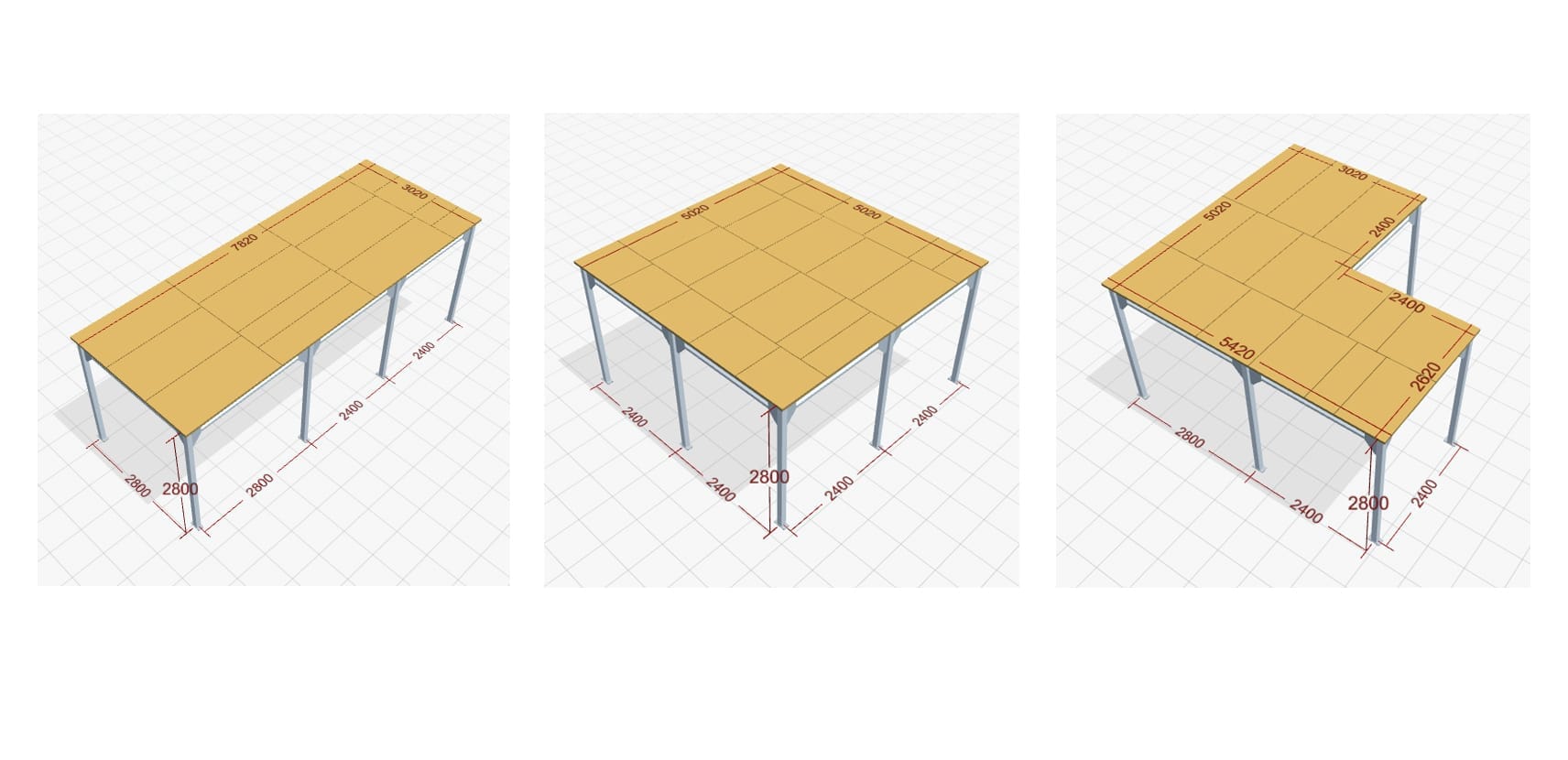 Vorm van het platformKies de passende basisvorm voor je platform: rechthoekig, vierkant of L-vorm.