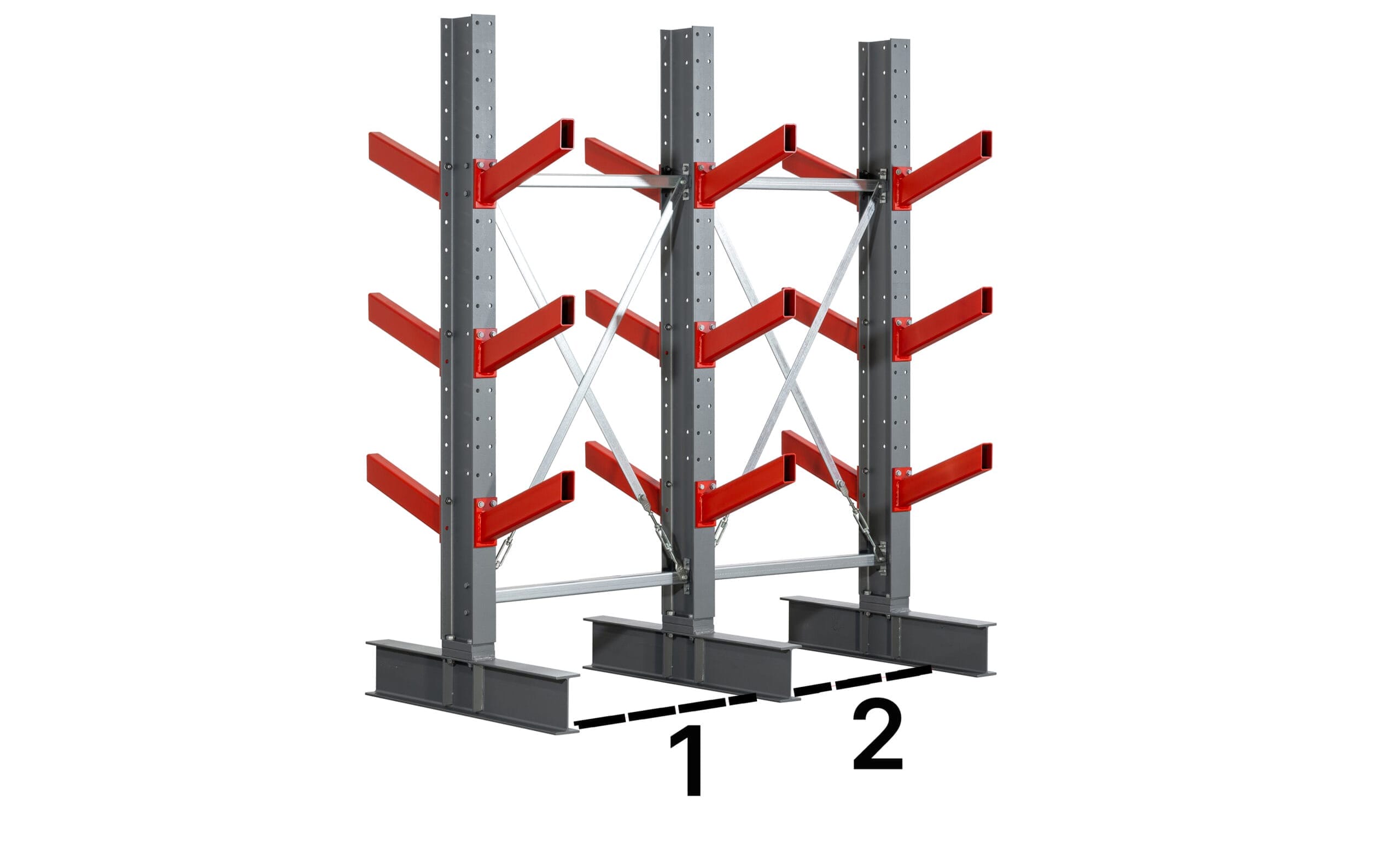 Rayonnages à bras inclinés KHX 3020, H : 2.500 mm (IPE 200), L : 2102 mm, nombre de travées : 2